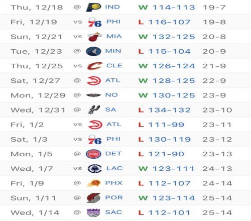 此役过后,尼克斯自NBA杯夺冠后仅取得7胜8负。