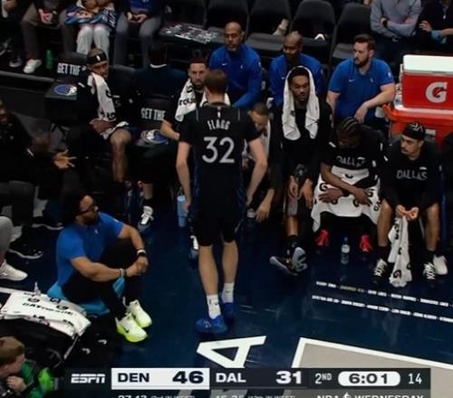 比赛第二节中段,弗拉格在防守沃特森时不慎扭伤左脚踝,随后被替换下场&返回更衣室检查。