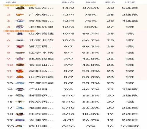 CBA最新积分榜